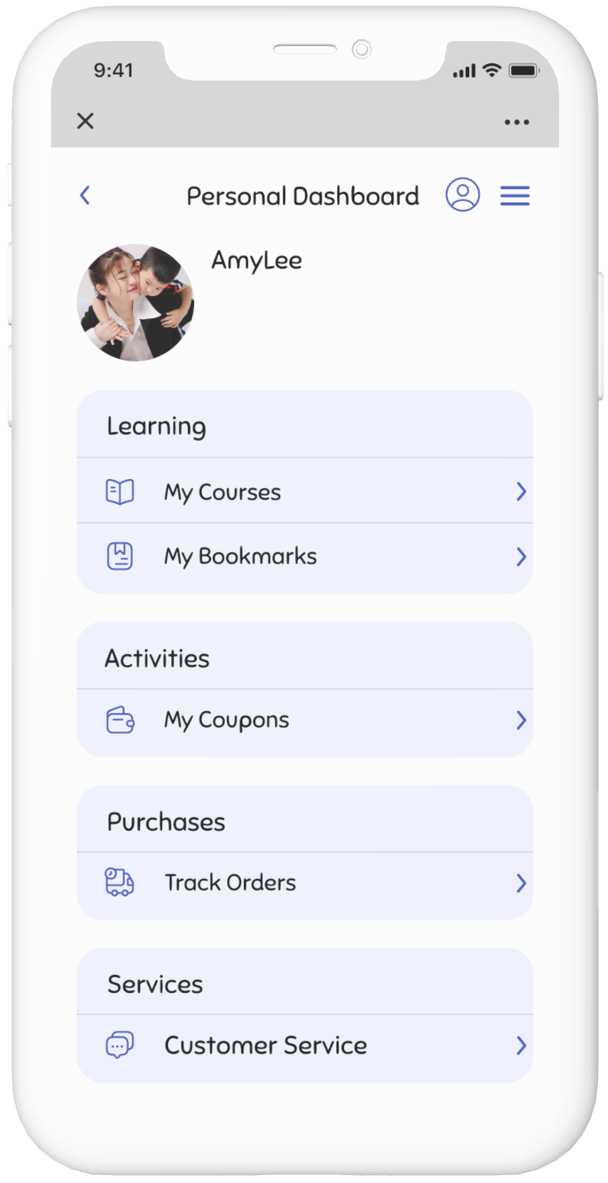 All the features organized in WeChat based mobile website. Navigating services made easy for long term and new users.