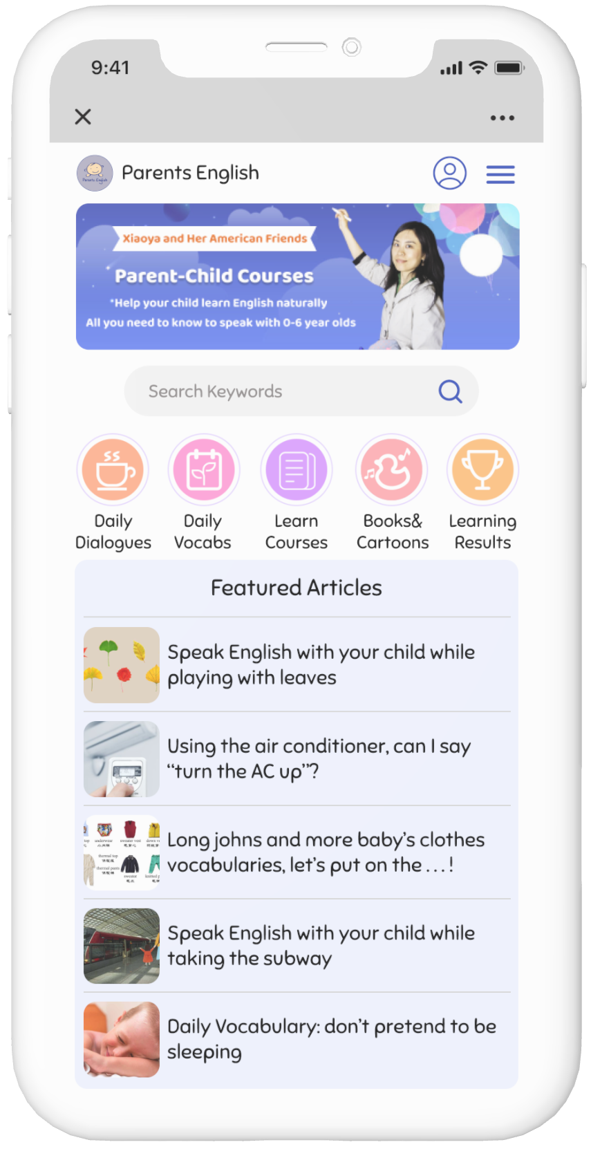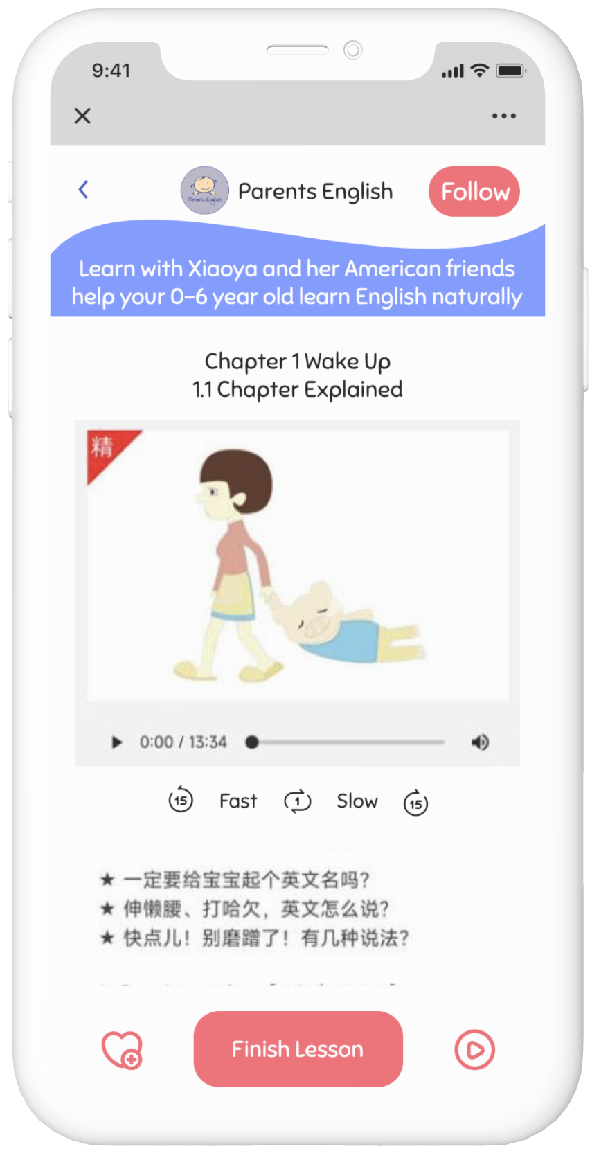 Parents English is an edtech startup company based in China. Founded by a Chinese mom with the experience of studying and working abroad, Parents English is dedicated to help Chinese parents with 0-6 year olds to create a bilingual environment at home and help their child learn English and Chinese at the same time.