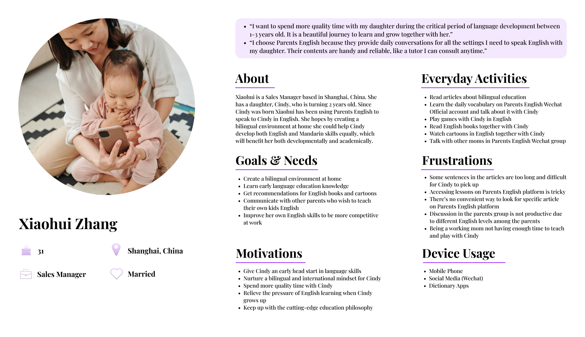 I sent out surveys to Parents English users to learn about their learning habits and current experience using Parents English platform to find out how I can improve their learning experience and cater to their needs.