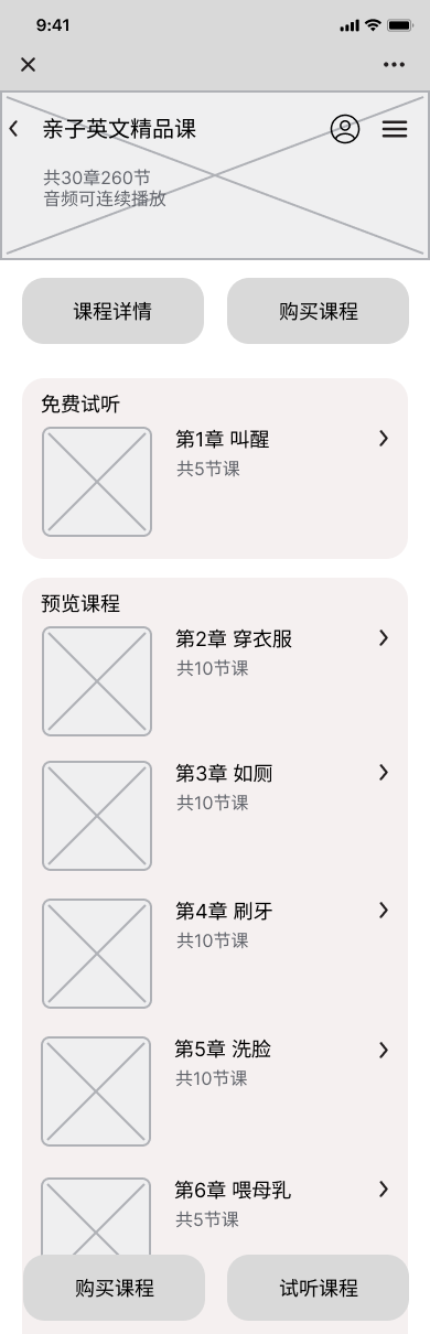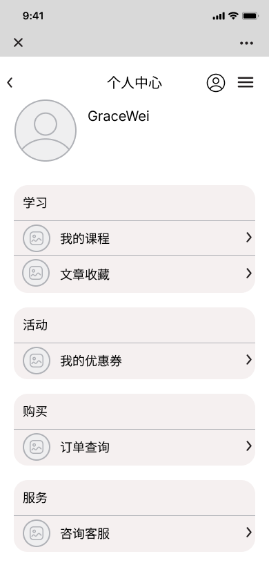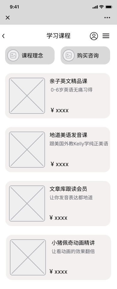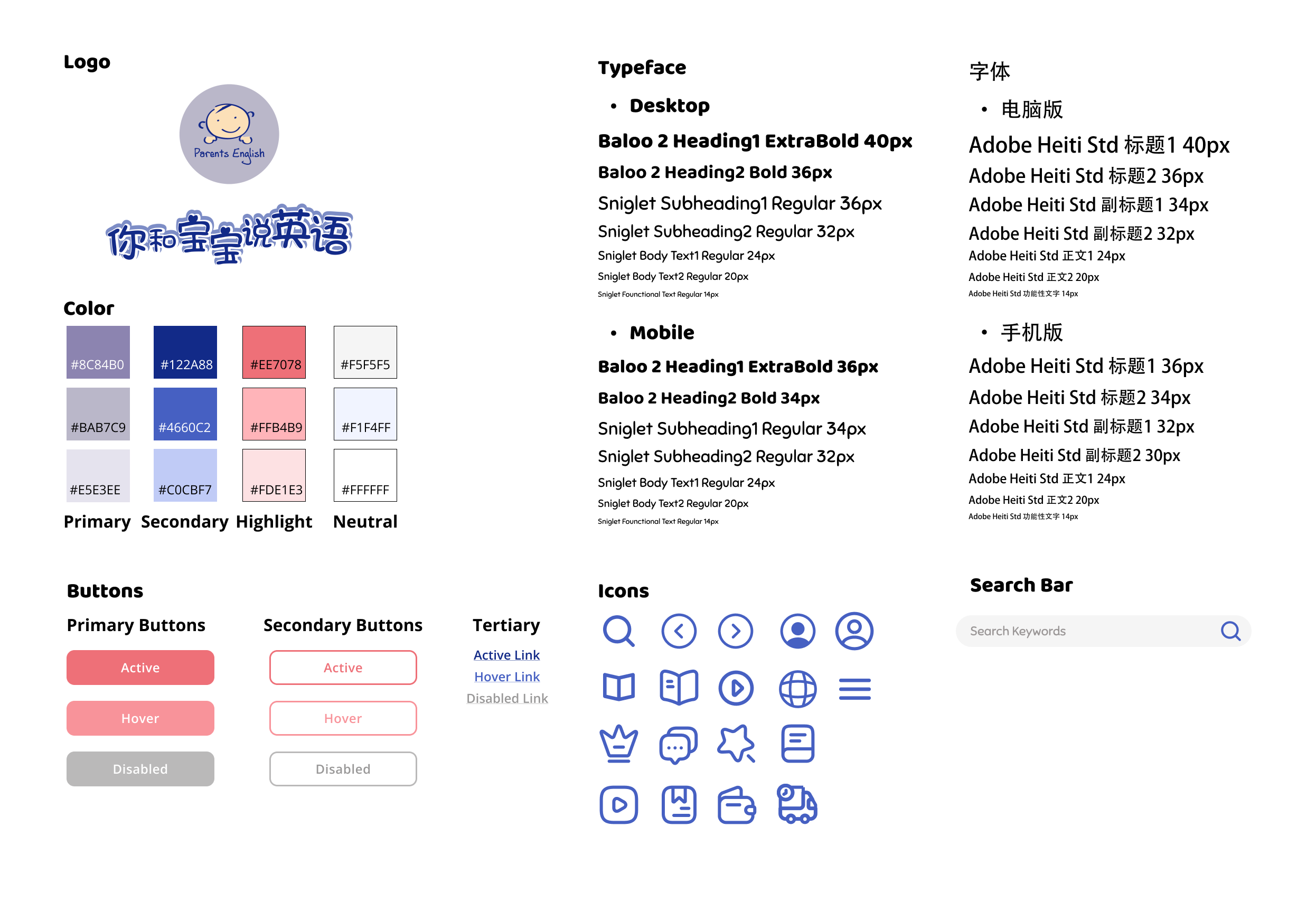 I skipped the low-fi wireframes and started with mid-fi in this project because it’s more presentable and easier for my client to understand my design. I designed the responsive homepage for both mobile and desktop. Since the redesign focuses on the learning experience on the mobile website, I also created pages in the navigation and the whole task flow for “Learn Courses” for the mobile website. The mid-fi prototype was created in Chinese for the convenience of communication with my client.
