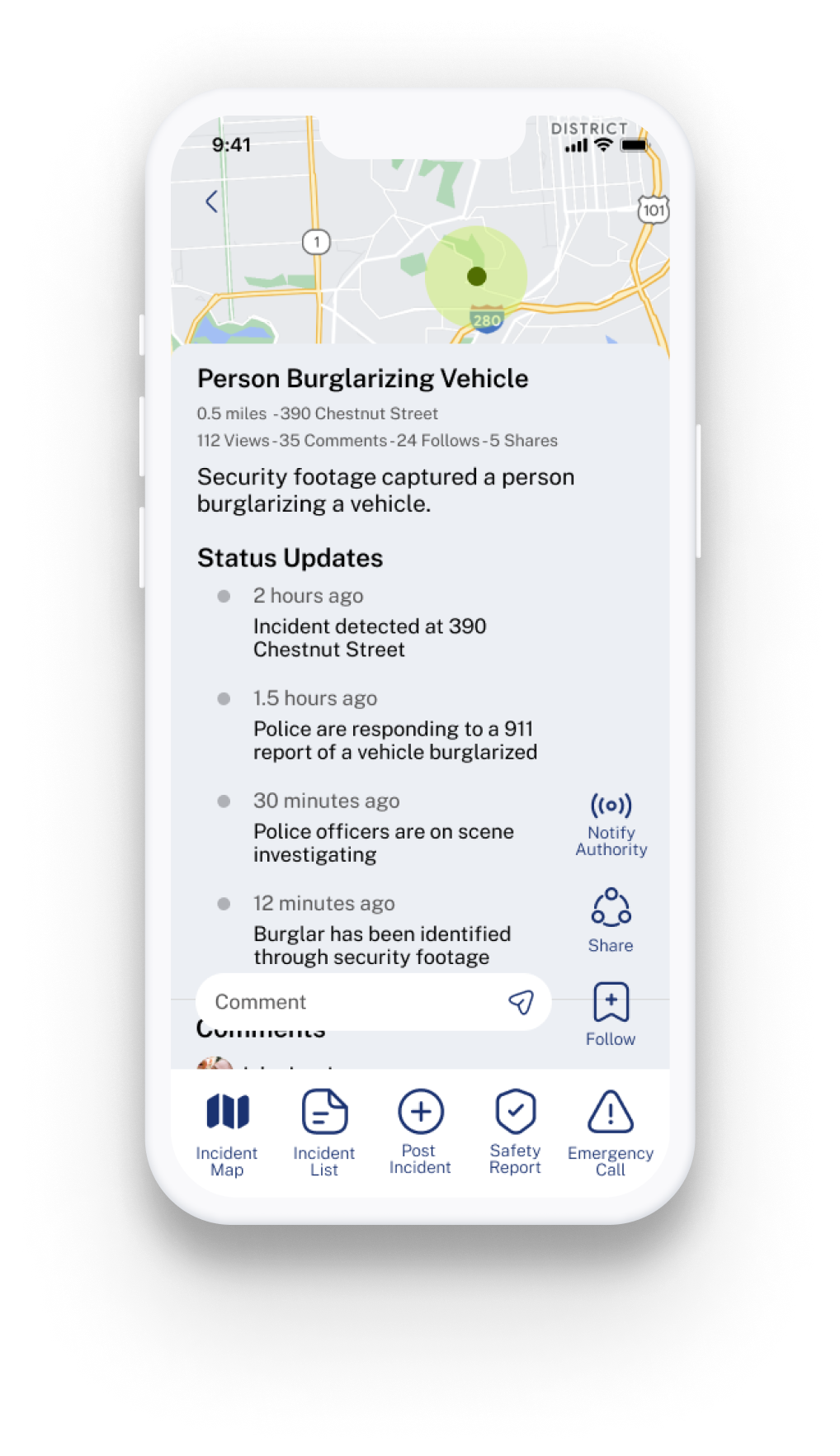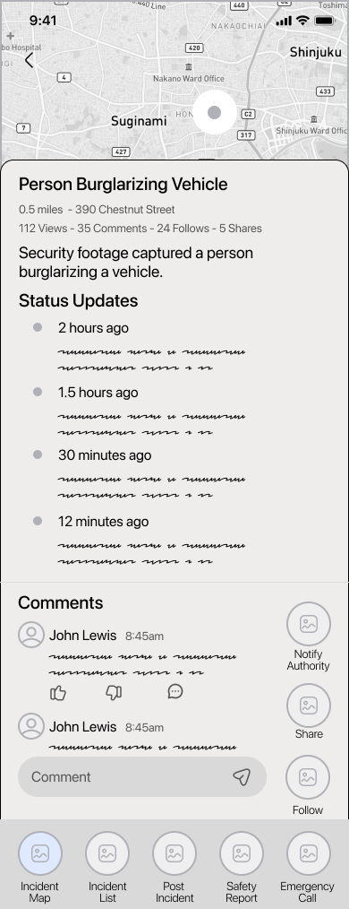 People would like to share the information by sending the incident with a click of button to their close contacts, commenting on an incident, or posting an incident they encountered