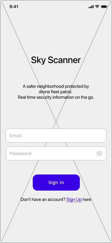 Since the pandemic started in 2020 many cities have experienced an increase in crime. According to recent data, crime rates have risen by an alarming 25% in urban areas. This surge has heightened concerns about safety among residents. Under such circumstances, SkyScanner is designed to promote the security of residents in urban areas. The idea is to use drones to monitor criminal activities in real time. Once a criminal activity is identified, law enforcement will be informed for quick response. Local residents can also check for criminal activities in their area to look out for. This project aims to design a MVP for the App.