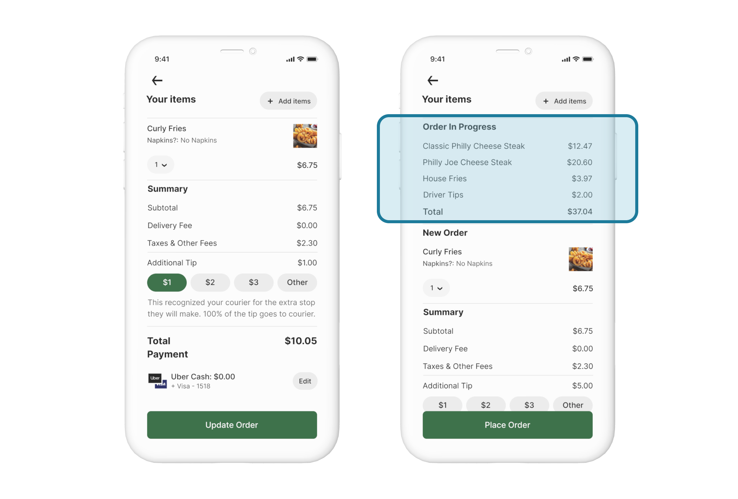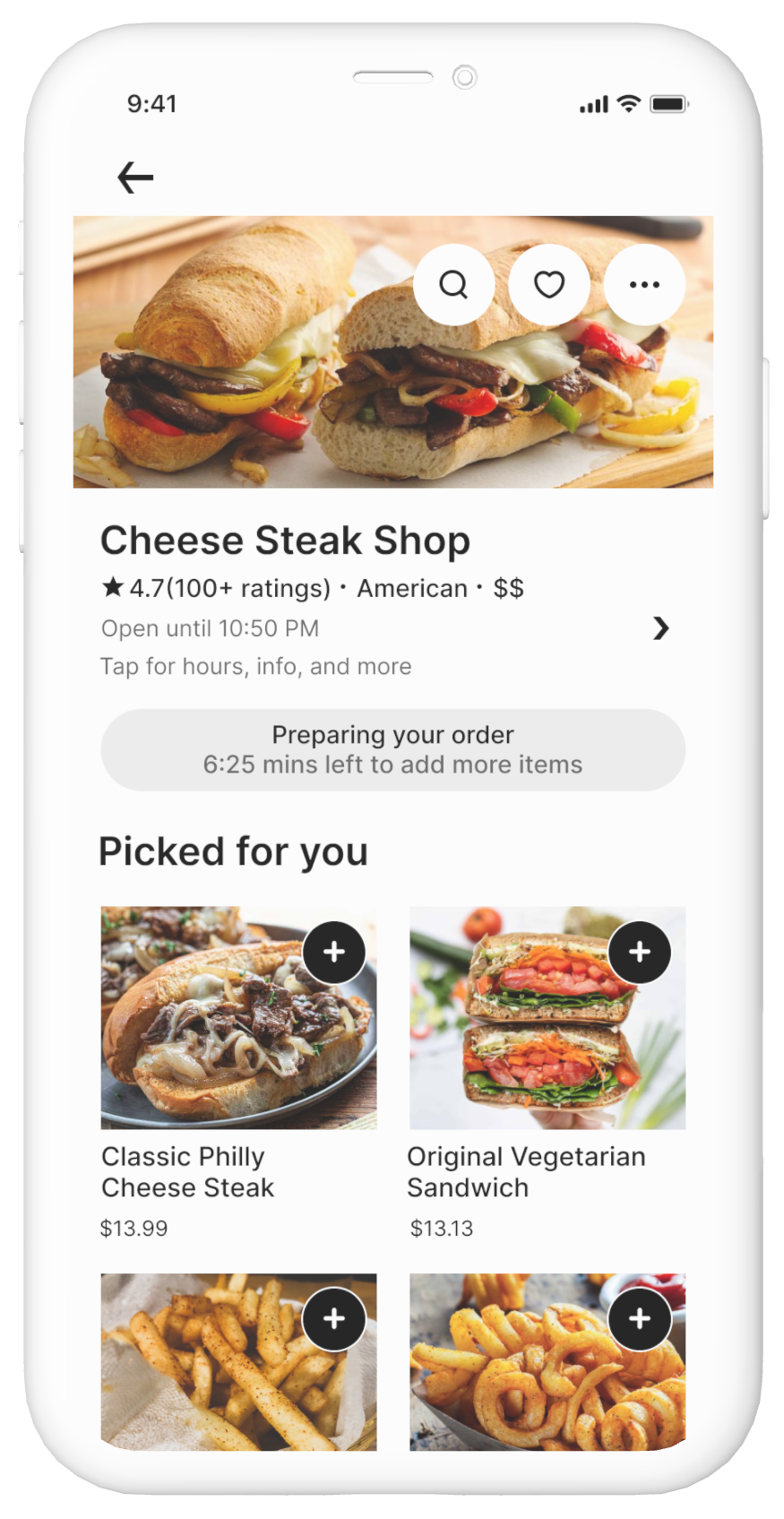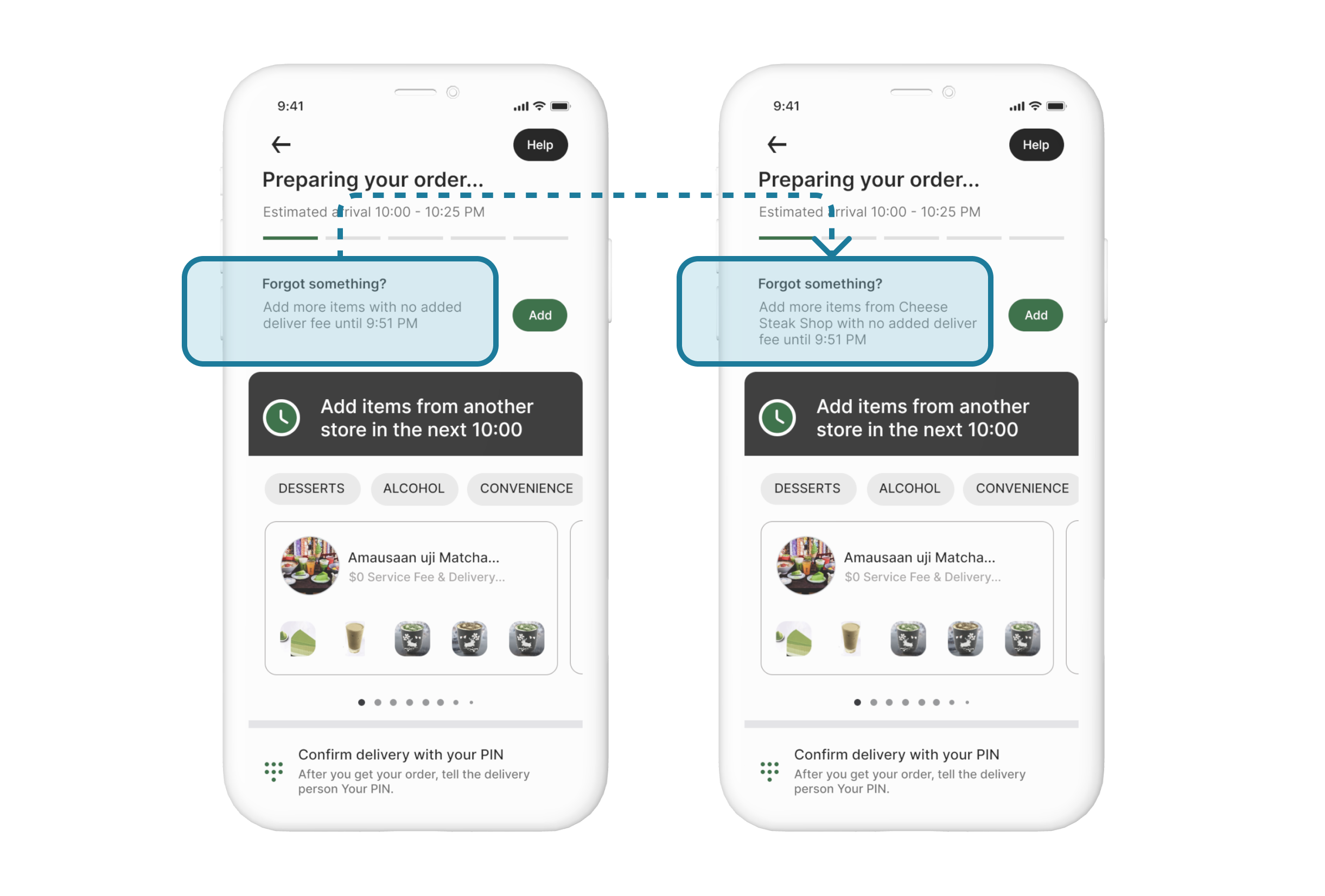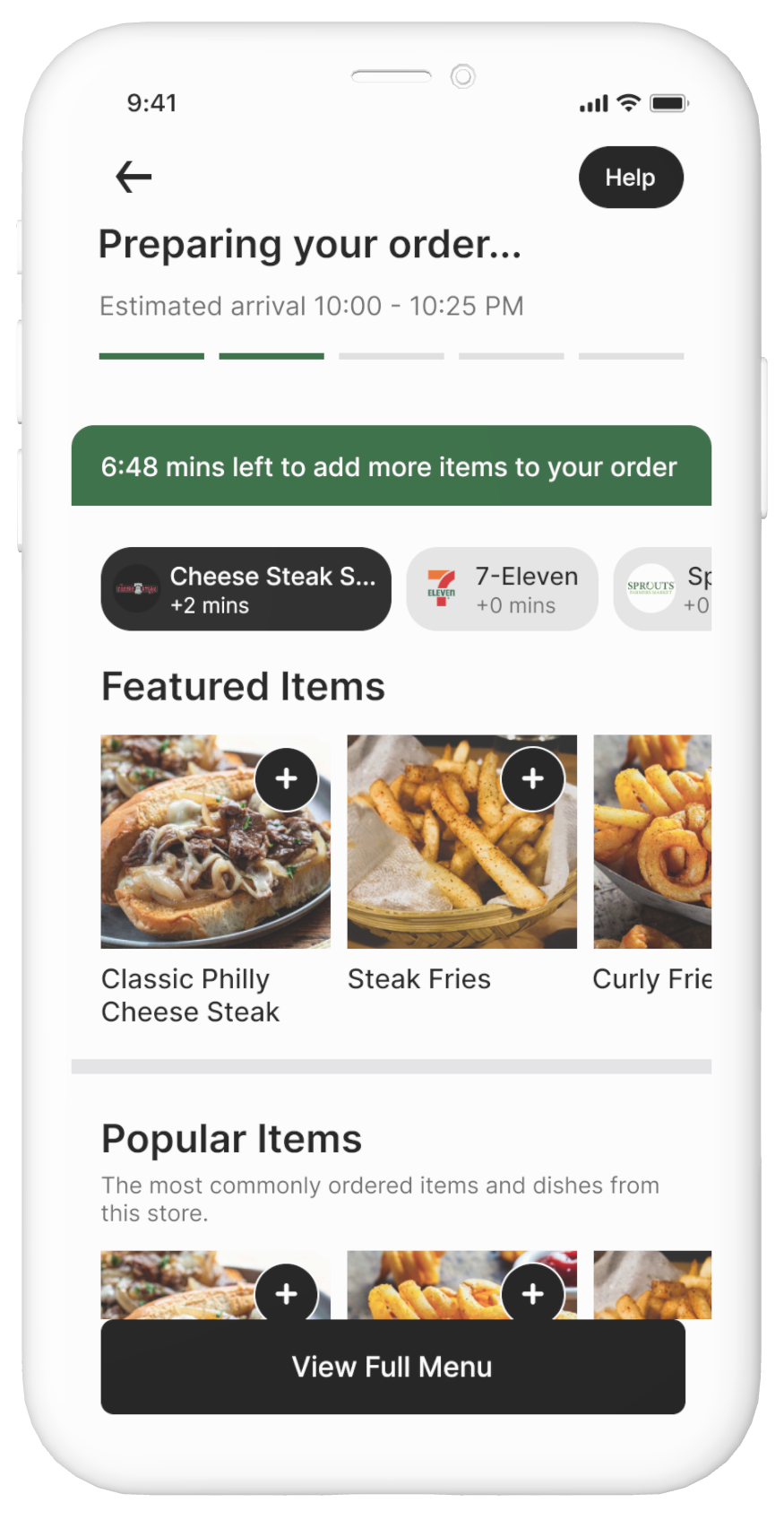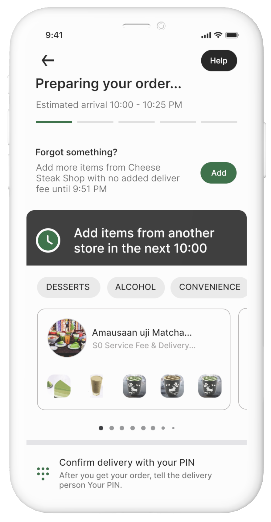 Forgot something? Within 10 minutes after placing an order, add more items from the same store or pick up more items from nearby businesses.
