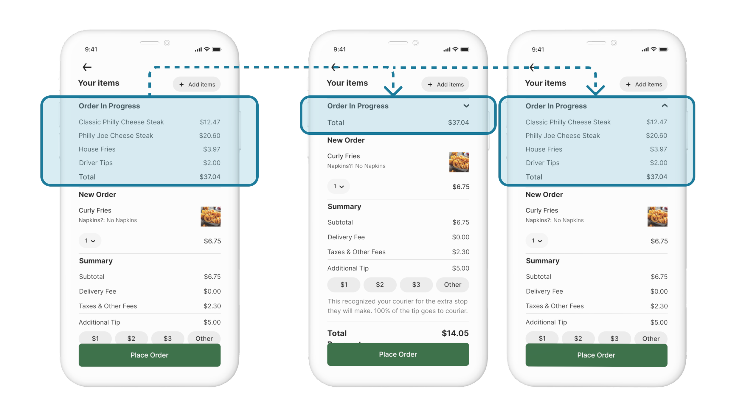 I created a user flow for adding more items from the same store after placing an order.